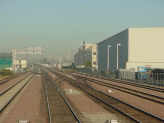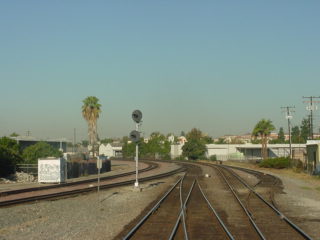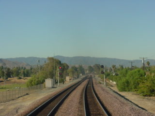 West Riverside, where the former Los Angeles and Salt Lake Route, now Union Pacific, joins the BNSF mainline for their run to Daggett.