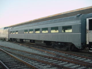 Boston & Maine 6-4-6 sleeper 34 "Salisbury Beach" PPCX 800257 built by Pullman-Standard in 1954 for use on the State of Maine overnight express from Grand Central Terminal in New York to Concord, New Hampshire. The car's six roomettes feature cut-away beds and permanent sinks. The six bedrooms included private annexes and an en-suite capability. Owner and restorer, Tom Pearson, has owned eleven other cars before the Salisbury Beach including a diner- lounge car and several baggage cars. He bought the car in 1989, and brought it to California from St. Louis off the Sunset Limited, in February 1990. In restoring rail cars, as with restoring classic automobiles, finding original parts is a challenge, but part of the enjoyment of authentic restoration. The car has been all refurbished except for upholstery and carpet, which will soon be replace with original pullman upholstery. Original steam heat has been replaced with electric baseboard heaters. Tom has updated the car by converting one restroom to a shower and another to a dressing room, leaving two restrooms.