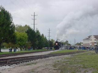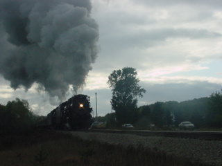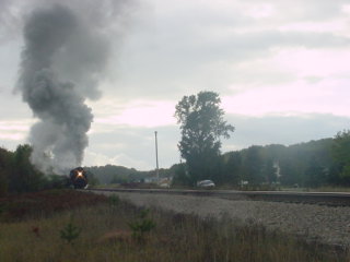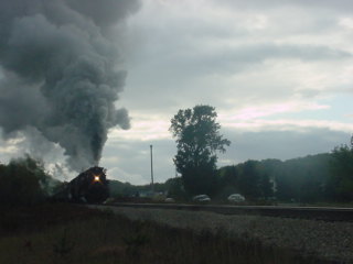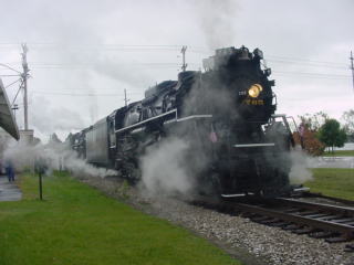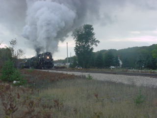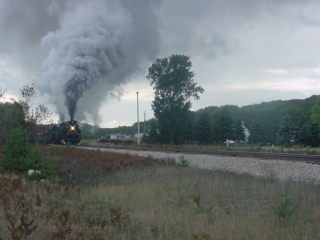 Passing the former Ann Arbor Railroad station. I bought a Nickel Plate 765 Hooded sweatshirt and was finally warmed up, as well as a couple of Coca-Colas. Later, the train crew announced there would be some photo runbys at Lucas in about twenty minutes.