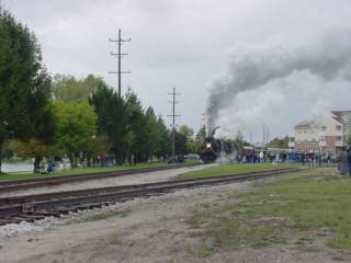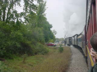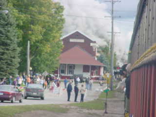 The train finally returned from wying the engines and rearranging them so now Pere Marquette 1225 would be on the point for the trip back to Alma. All passengers reboarded and waited for the return trip to start.
