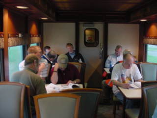 5/15/2009I was up early and after preparing for the day, left the Best Western for the Holiday Inn as it poured rain. On the way, the rain let up so I went to Casey's petrol station for a maple bar then walked over to the buses but I realized that a Union Pacific release was not part of my convention packet. I went back to the registration table where I was given one and and filled it out then took it back to the bus and was allowed to board.