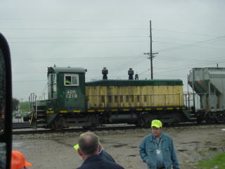 Archer Daniels Midland SW1200 1218, nee Chicago and North Western 318, built by Electro-Motive Division in 1962. We were allowed to get out of the bus so we could get pictures of our train before departure.
