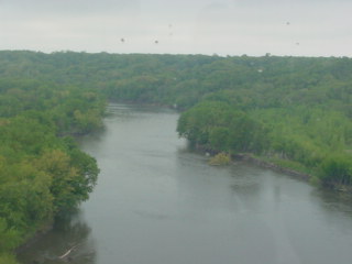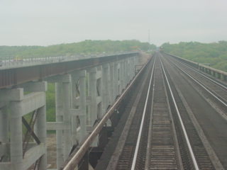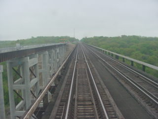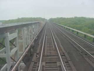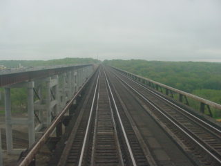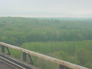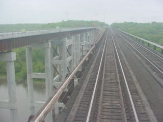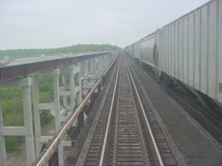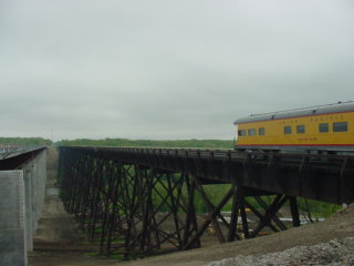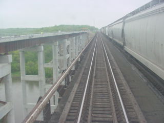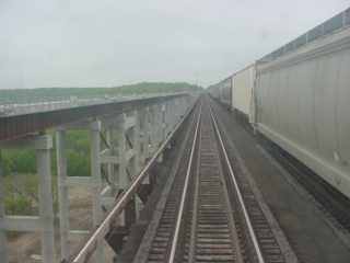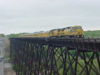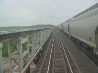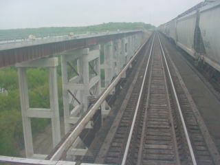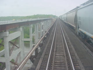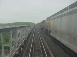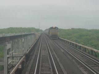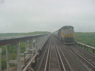 As we were crossing the Kate Shelley High Bridge, an eastbound Union Pacific freight train also crossed.