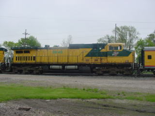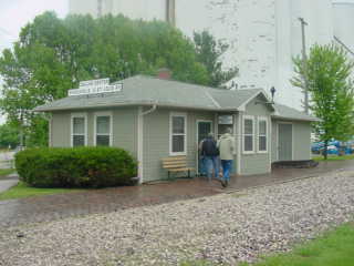 Chicago and North Western C44-9W 8646. We all had a really good boxed lunch and after the Special left for Council Bluffs at 12:30 PM, the bus I was on proceeded west out of Boone, then south through Minburn, which has a Minneapolis & St. Louis station still standing. However, we did not stop there but went onto Dallas Center where GIT Insurance runs their business out of a Minneapolis & St. Louis station, so we stopped there.