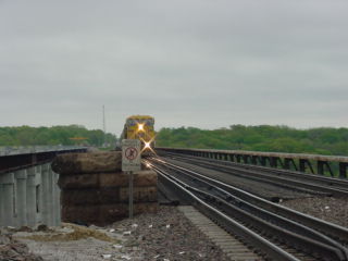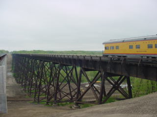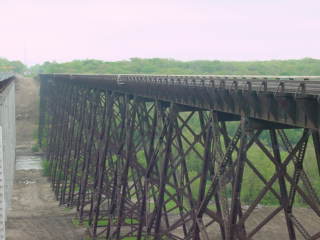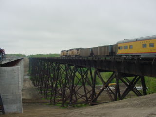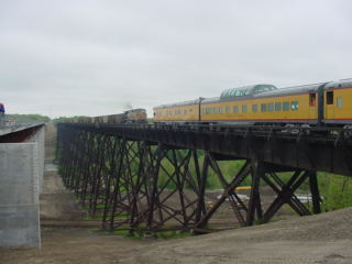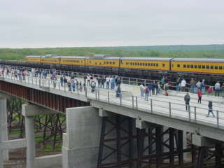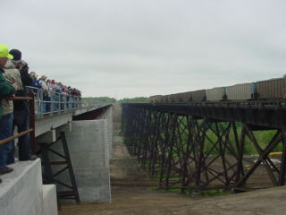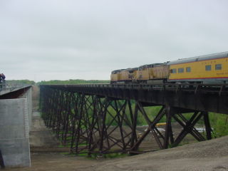 At the west end of the Kate Shelley High Bridge, we were allowed to detrain for pictures and here you see the "Feather River" still out on the bridge.