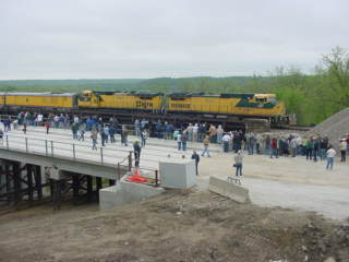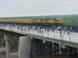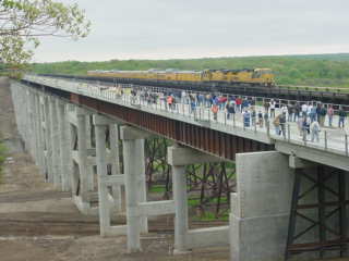 An eastbound Union Pacific coal train crossed, after which we were allowed to go onto the new bridge.