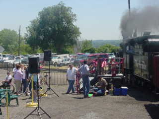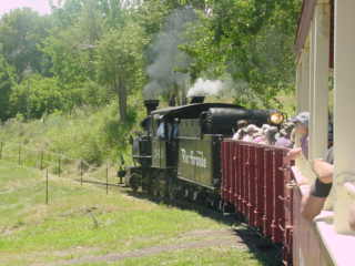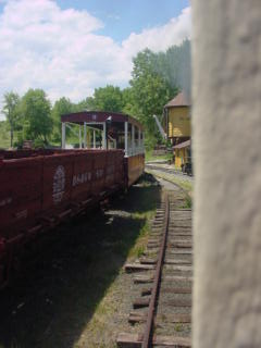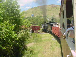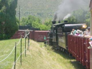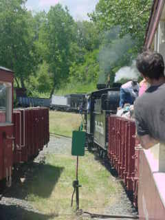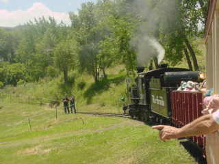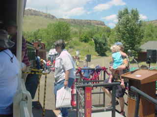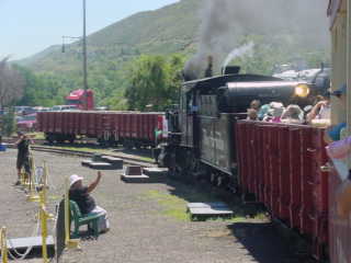 We returned to the boarding area and I detrained a happy train rider then went and got a hot dog and Coca-Cola before I getting up to a bench above the tracks to wait for the steam train's next trip.