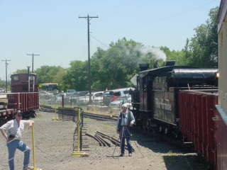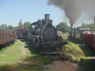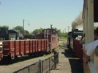 After a wonderful parade of narrow gauge equipment around the museum's track, Denver and Rio Grande Western 2-8-0 346 then started getting its train out of storage to pull the trips around the museum. Rio Grande Southern Galloping Goose 7 would also be doing passenger duties this afternoon. It took about twenty minutes before our train reversed into the boarding area. Since I had been standing at the front of the line for over an hour trying without success to get through to Let's Talk Trains, which was celebrating their seventh anniversary show, I was first to board and sat in the open air covered car.