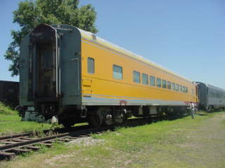 Santa Fe 3-2-1 lounge-observation car "Navajo" built by Budd in 1937 for the original Super Chief. It was withheld from Pullman lease in November 1957 and subsequently sold to the Intermountain Chapter of the National Railway Historical Society.