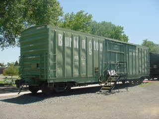 Chicago, Burlington and Quincy observation car 96, ex. Chicago, Burlington and Quincy 90 1902, nee Chicago Burlington and Quincy B-99, built by Barney and Smith in 1886. Retired in 1962, it was sold to the Intermountain Chapter of the National Railway Historical Society in Denver. The Chapter ran the car over 25,000 miles, attaching it as an excursion car to the Denver & Rio Grande, Union Pacific and other railroads. With the introduction of Amtrak, the car no longer met the mechanical standards of modern railcars and in 1972, was placed permanently on display at the Colorado Railroad Museum. In 2006, the Intermountain Chapter donated 96 to the Museum, where today it is used to entertain guests and host small meetings.