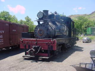 Denver and Rio Grande Western 30 ton switcher 50, ex. Edward Hines Lumber Company's Grant County Oregon mill,nee Sumpter Valley Railroad 101 built by Davenport Locomotive Works in 1937. It worked until the end of operations on the Sumpter Valley in 1961 then in 1963, was purchased by the Denver and Rio Grande Western where it worked at Durango until sold to the Roaring Camp and Big Trees in Felton, California in 1970. It was then purchased by a museum in Durango in 1981 and finally sold to the Colorado Railroad Museum in 1984.