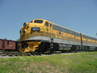 Between December 1983 and March 1984, they powered the Denver and Rio Grande Western's Ski Train, which ran fifty-six miles from Union Station in Denver to the ski resort of Winter Park and return each day. The train was inaugurated in 1940 and climbed about 4,000 feet passing through thirty tunnels including 6.2 mile Moffat Tunnel, the highest railroad tunnel in the country. After their short stint on the Ski Train, the two units performed a little more general service and were then retired. At that time, 5571 was the last operational F unit on the Rio Grande. They were donated to the Colorado Railroad Museum by the Southern Pacific, successor to the Rio Grande in 1996.