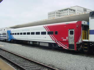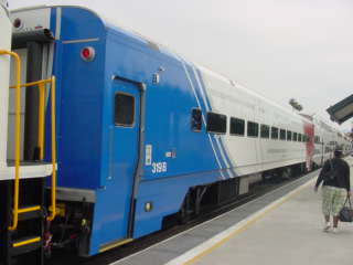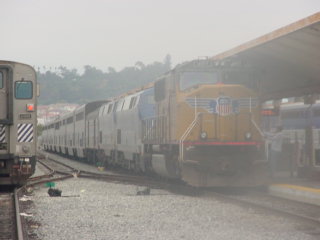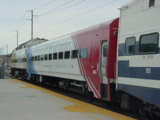 Metrolink Comet Car 320. I boarded Pacific Surfliner 572, which left LAUPT on time but waited at Eastern Avenue for over an hour for Pacific Surfliner 566 to reverse to Metrolink's Commerce station to discharge all of its passengers and checked baggage then be cleared for our train to pick everything up. While we were doing this, Pacific Surfliner 774 went by and we followed it south. The train then stopped at San Clemente Pier and Old Town on the way to San Diego. I detrained from this disaster at Santa Ana at 1:21 PM {12:58 PM} then drove home and talked with Winston. He and his daughter Christy wanted to try for a Double Comet Car trip on Monday.