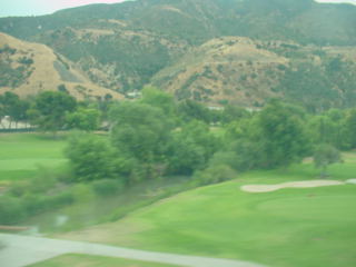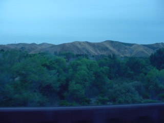 At the east end of Santa Ana Canyon, we crossed the Santa Ana River again, but tree growth over the years has blocked the view of the water, as well as some BNSF well cars that were parked there.
