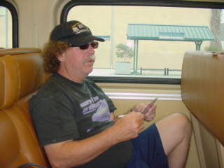 Winston took a picture of me looking at the new pocket-sized Metrolink timetable before we departed Riverside on time.