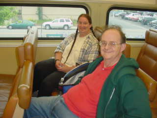 Winston and Cristy aboard Comet Car 310. The train ran to Irvine, Tustin, Santa Ana and Orange before I would start new Comet Car mileage to Atwood.