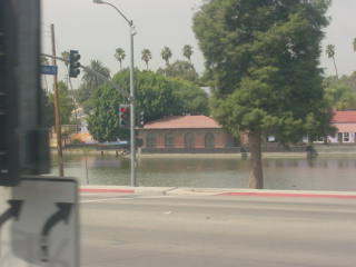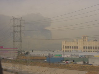 We crossed the Los Angeles River with the fire in view and would leave Los Angeles via San Gabriel.