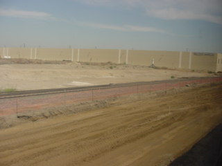 Near New Siding, Union Pacific was constructing a small yard with sound walls.