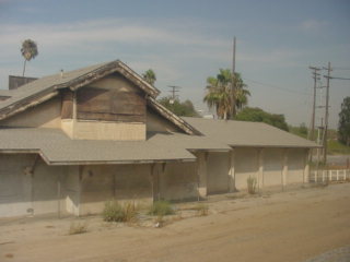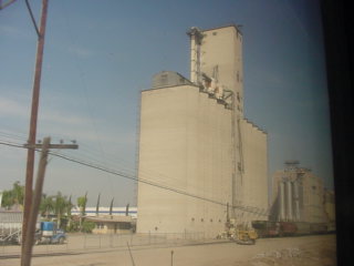 A grain elevator east of Interstate 215. Now the Sunset Limited would climb San Timoteo Canyon.