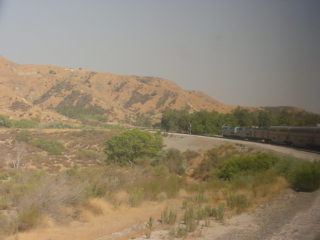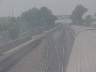 The Sunset Limited at Palm Springs. I walked back through the train to my room as there was a strong hot breeze blowing in my face after I took this picture.