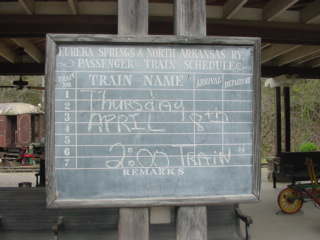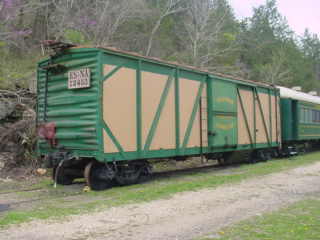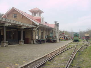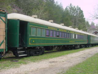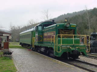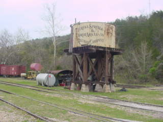 The Eureka Springs & North Arkansas Railway HistoryThe Eureka Springs & North Arkansas Railway was started by the late Robert Dortch, Jr., and his wife Mary Jane in 1981. Robert Dortch, Sr., had built the Scott and Bearskin Lake Railroad as part of the Plantation Agriculture Museum near Scott, Arkansas, in the 1960s. After his death, the family closed the railroad and began moving the equipment to Eureka Springs (Eureka, for locals). Eventually, a 2.5 mile railroad was built, requiring several trestles over Leatherwood Creek. The line features the former Fort Smith Frisco turntable at the south end at Eureka, and a wye at the north end at Junction. The railroad leases the former Missouri & North Arkansas stone depot (built 1913) at Eureka, and added a water tower and a small yard. They also built a commissary adjacent to the old ice house and electric plant building to the south to prepare meals for the luncheon and dinner trains. The railroad was used in the 1982 television mini-series "The Blue and the Gray".