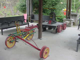 Buescher & Sohn 0-4-0T 35 built by Orenstein & Koppel in 1933. It was later sold to L&M Manufacturing Company in Peru, Indiana and sold to Marco Polo Park in Bunnell, Florida. At some point, it came to Eureka Springs.