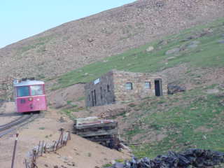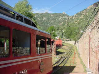Passing the Pikes Peaks Cog Railroad shops.