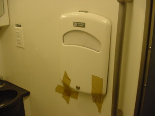 Something told me when I went to the bathroom and saw the electrical tape holding up the toilet seat covers that this trip would end up being unique. I received a 5:00 PM dinner reservation and after Mendota, it was announced that dinner would be delayed as the dining car had no water. This was ridiculous. How could a train leave a terminal with no water? I called Amtrak's toll-free number and spoke to a customer representative who used to be a dining car steward. I asked who was responsible for seeing the dining car has water. He responded four people, two in the yard, the head chef and Dining Car Steward. I was not a happy train rider. While I was on the phone, the announcement was made that we would take water at Galesburg and that dinners tonight would not be served a dessert. Let's just say I was not any happier after I finished the call than I was before.