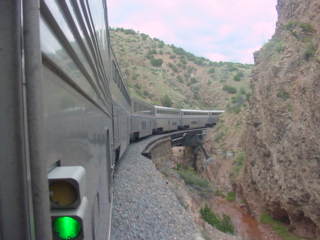 Apache Canyon before we stopped at Lamy at 6:51 PM {2:24 PM}. The train ran to the siding at Domingo for a New Mexico Rail Runner train then continued our journey south.