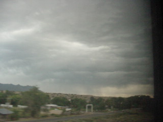 Scenes on the way to Albuquerque. At 7:43 PM, we stopped for a crew change at the Sandoval County/US 550 Rail Runner station as our crew was about to die on the Hours-of-Service law. We departed that station at 7:49 PM and made our way to Albuquerque, arriving there at 8:08 PM {3:55 PM} for our servicing stop. I detrained in the 78 degree air with a good strong breeze blowing, after which we departed at 8:47 PM {4:45 PM} and I made up my room and called it a night.