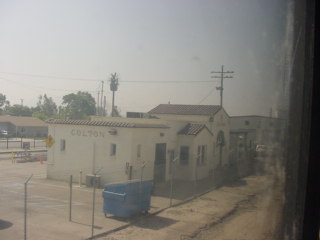 The former Union Pacific station in Colton built in 1927. The train ran to Riverside leaving there at 10:16 AM {5:53 AM} then on to Fullerton, where I detrained at 10:57 AM {6:34 AM}, ending the worst trip I had ever had aboard the Southwest Chief.
