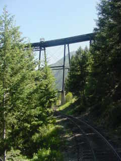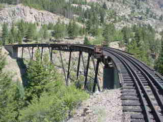 The impressive Devil's Gate Viaduct, over which the railroad gains 500 feet through two horseshoe curves.