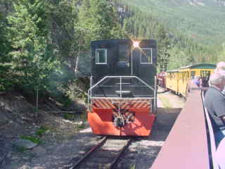 Georgetown Loop Railroad 80 ton switcher 1203 cut off our train and reversed down to the switch.