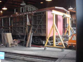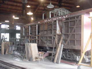 Detroit and Mackinac caboose W52 built in 1912 under restoration.