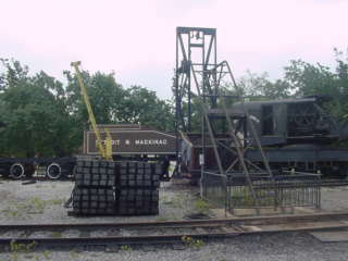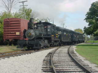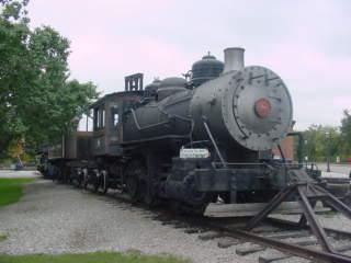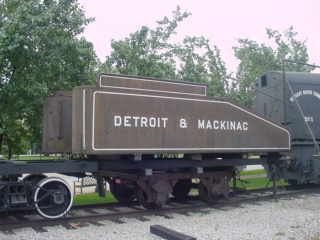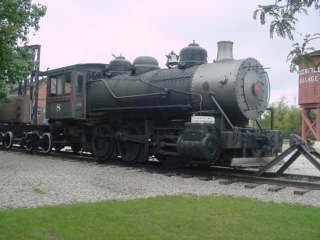 Detroit and Mackinac 0-6-0 8, ex. C.A. Pinkerton {Detroit and Mackinac} 8, exx. A. Fivenson Iron and Metal Co, exxx. Huron Portland Cement 6, nee Michigan Alkali 8 built by Baldwin in 1908. The Detroit and Mackinac rebuilt the locomotive during the 1970's and it ran on a limited basis for their railroad employees until the steam locomotive, three passenger cars, and a caboose were donated to the museum in 1979.