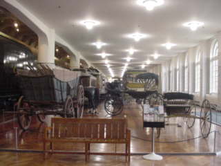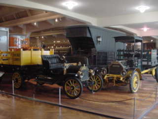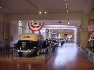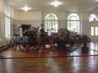 Just east of the railroad displays is an area of wagons and horse-drawn vehicles. Now let us look at the cars and other items.