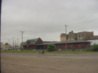 The former Soo Line Minot station built in 1912 which houses the Old Soo Depot Transportation Museum. We arrived and I detrained to a 48 degree morning with a light rain falling.