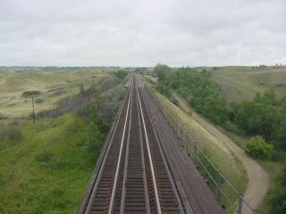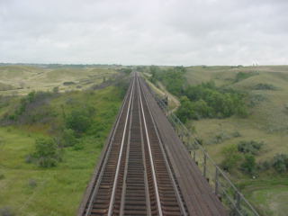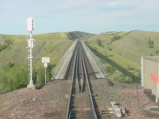 The double tracks go down to one for the crossing of the Gassman Coulee trestle.