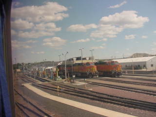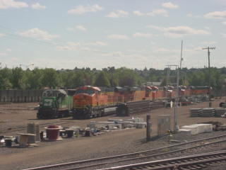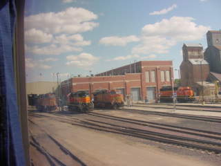 BNSF's Havre Diesel Servicing Facility before we stopped at the fuel pads to refuel prior to our fresh air stop at Havre. I detrained, bought a pair of ice cream sandwiches and sat on a bench by the Havre sign. Imagine if it would have been two women instead of two men and the name of the city might have been called Havhim. We departed about twenty five minutes late.