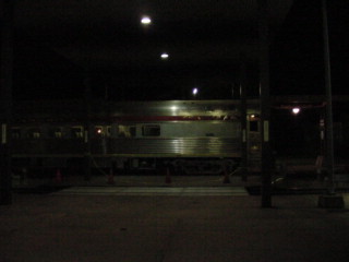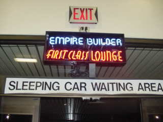 At 10:32 PM, the Empire Builder arrived at the station. First the Conductor took every sleeping car passenger's ticket then one waited for the Sleeping Car Attendant, in my case Dan, to take you out to the train. I was in the last car, 2730, the through sleeper to Portland, also known as 32077 "District of Columbia" and had Room 5 for my journey. The train consisted of P42DCs 206 and 152, baggage 1260, transition 39028, sleepers 32106 and 32016, diner 38034, coaches 34033 and 34057, lounge 33028, coaches 34027 and 31025, sleeper 32077 "District of Columbia" with the private car "Gritty Palace" on the rear only as far as Fargo.
