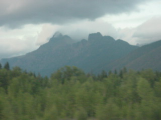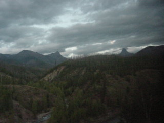 Mountain peaks in Glacier National Park as we descended the grade along the Middle Fork of the Flathead River.