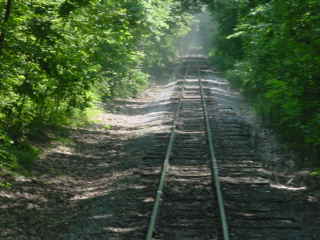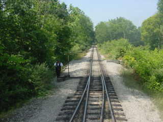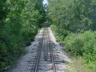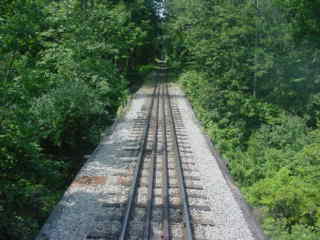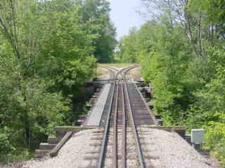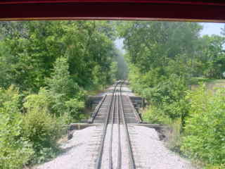 The bridge just before the switch. The train returned to Crossroads station and I walked to the front.