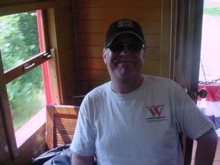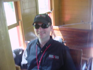 Matt enjoying his trip in the caboose on the Huckleberry Railroad.