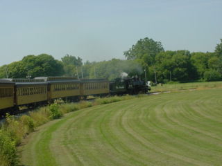 After my 10:00 AM ride behind Little River Railroad 4-6-2 110 at Train Festival 2009, Matt Melzer and I drove back over to Flint and found the Huckleberry Berry Railroad located in the Crossroads Village Historical Park. We received our tickets with less than five minutes to spare and boarded the caboose for our trip on the Huckleberry Railroad.
