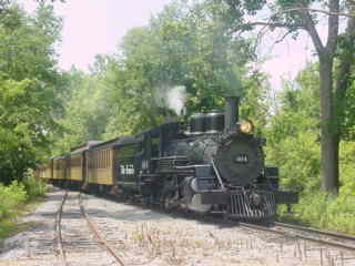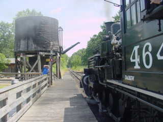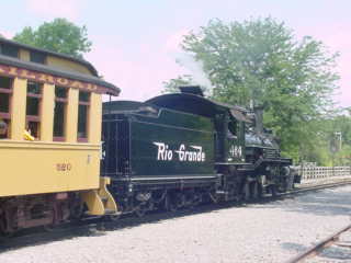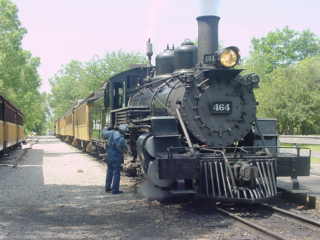 The Huckleberry Railroad's other operating steam engine is Denver and Rio Grande Western 2-8-2 464 "Mudhen" built by the Baldwin in 1903. The engine ran on the both the Rio Grande and Rio Grande Southern in Colorado in the 1940's before operatingn on the famous Silverton Train in the 1950's. In 1973, Knotts Berry Farm in Buena Park, California purchased the steam engine and used it for just one year due to low clearances of the counter weights and the declining mechanical state so they sidelined the engine. In 1981, 464 was acquired by the Huckleberry Railroad who started restorration.