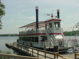 The Gennesee Belle which takes people on a cruise of Mott Lake. Plenty of time passed and they called order 57, however we had order 40. Our food was then delivered quickly since the employee had misplaced our order slip. After a good meal, we started back to the car.