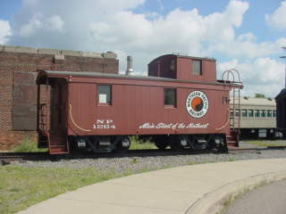 Northern Pacific wooden caboose 1264, nee Northern Pacific 1144 built by South Baltimore Car Works in 1901 and was on the railroad's roster for sixty-eight years. When this car was retired in 1969, it was the oldest caboose still in service on the railroad.