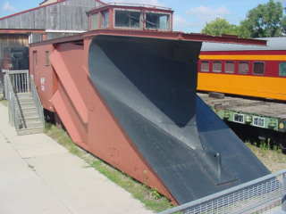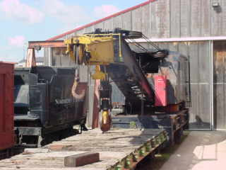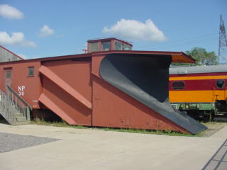 A working Derrick would spend most of its life stationed in readiness at a main shop, accompanied by flat cars for wreck clean-up gear and retired passenger cars for wrecking crew accomodations. When a derailment occured, the derrick and its train would be dispatched to the location. Once positioned to grab the derailed equipment, the outriggers (three each side) would be extended and blocking and jacks placed underneath to give the derrick a wide stance. Then the tie-downs could be released and the heavy lifting could begin.Northern Pacific snow plough 30 built by Russell Snow Plough in 1930.