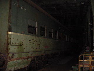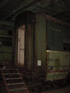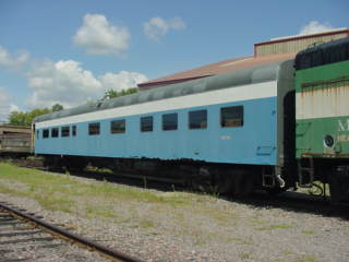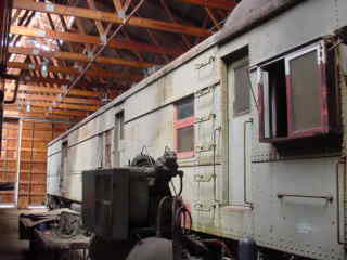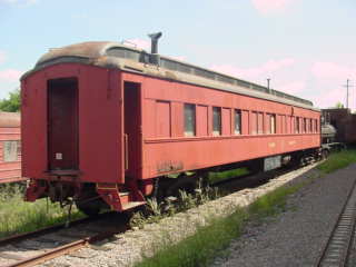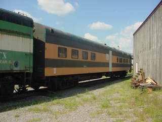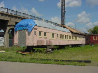 This coach was retired in 1971 with the coming of Amtrak. It sat for a while in the old Omaha Road car shops in Hudson, Wisconsin until aquired by MTM in 1985. Since then it has been in storage, first in a secured military facility, and since 1999 at Jackson Street.