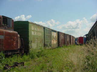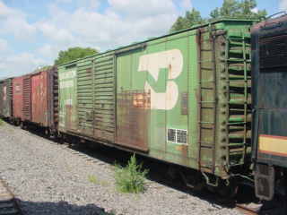 After the Great Northern merged into the Burlington Northern, the cars were repainted in the BN's "Cascade Green" colors and re-numbered from 138xxx to 236xxx. The BN itself merged into the BNSF in the 1990's but the cars were not re-numbered or re-painted for BNSF. In 2004, BNSF offered MTM four of these boxcars. They had been retired early due to bad-order doors, declining need for general-purpose boxcars and proximity to mandatory retirement age. One made it to the scrapper too quickly, so the remaining three "identical triplets" 236407 (GN 138407), 236660, and 375845 arrived in June 2004. When they arrived they showed their 37 years of service. Museum shop forces first straightened the bent door hardware so the doors worked again. The previous road numbers were readily determined – BN had painted them on the center sills.